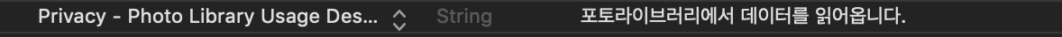 8. info.plist파일에 PhotoLibrary의 데이터를 사용할 때 보여질 메시지를 추가
